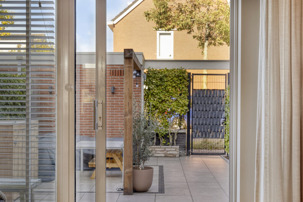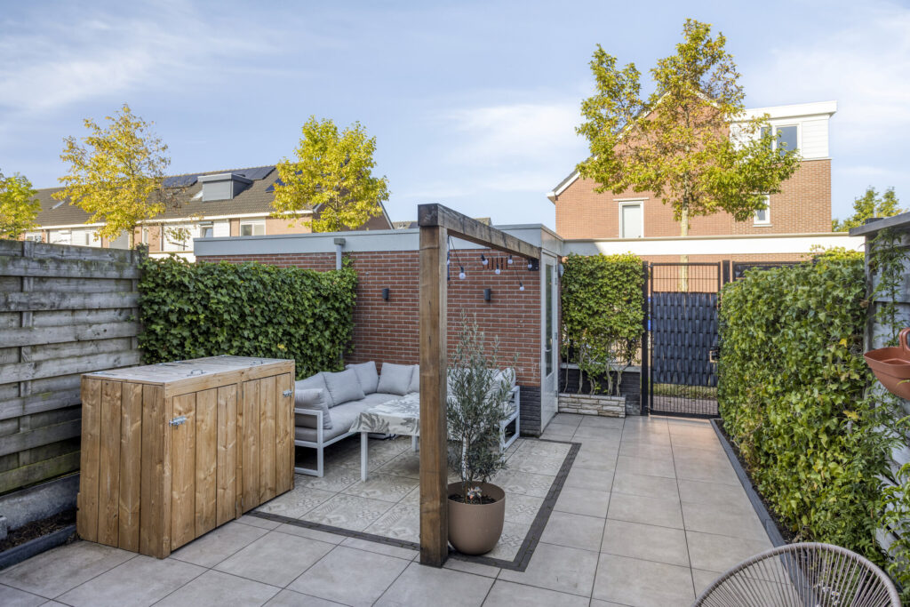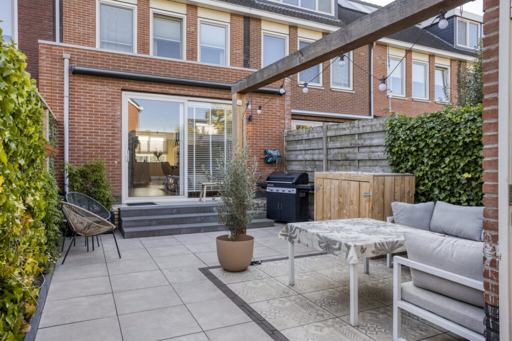 Vanuit het comfort van dit heerlijke woonhuis is het gehele jaar door ook volop van de verzorgde tuin op het westen met optimale privacy te genieten. De achtertuin is geheel opnieuw ingericht (2024) met fraaie keramische terrastegels. Verder zijn aanwezig een elektrisch bedienbaar zonnescherm, borders met vaste beplanting, degelijke erfafscheiding, buitenverlichting en een waterkraan. De achtertuin is bereikbaar middels een achterom.