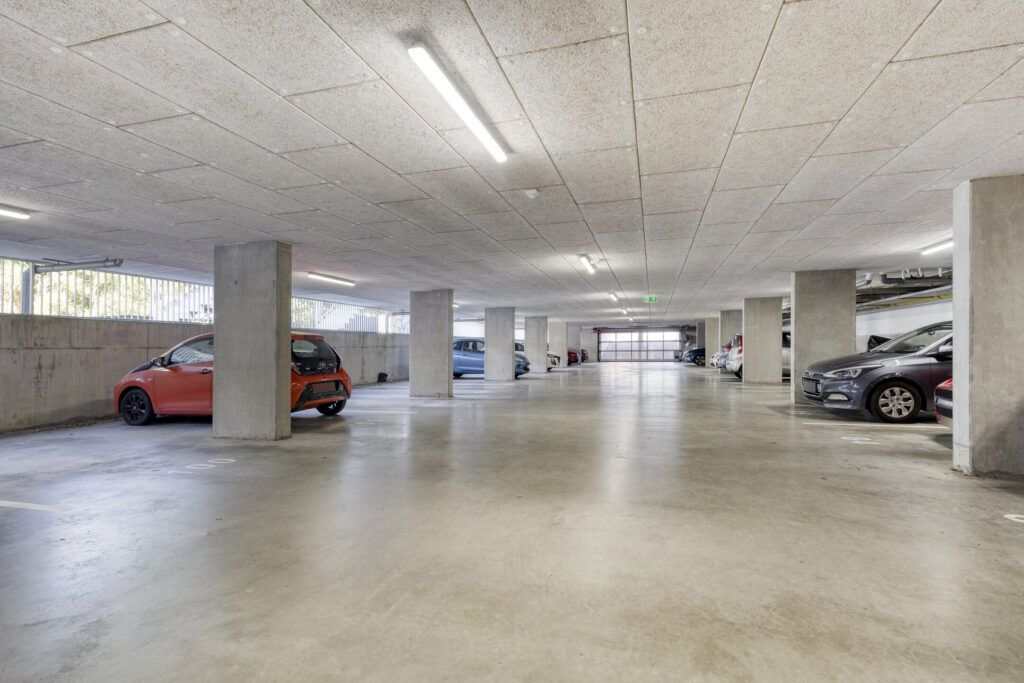 Eigen parkeerplaats gelegen in de ondergrondse parkeergarage (nr. 101) en voorzien van een op afstand bedienbare sectionaaldeur. Gasten kunnen gebruik maken van twee VvE parkeerplaatsen, doormiddel van een intern reserveringssysteem. Tevens is er een gezamenlijke ruimte om fietsen te stallen.