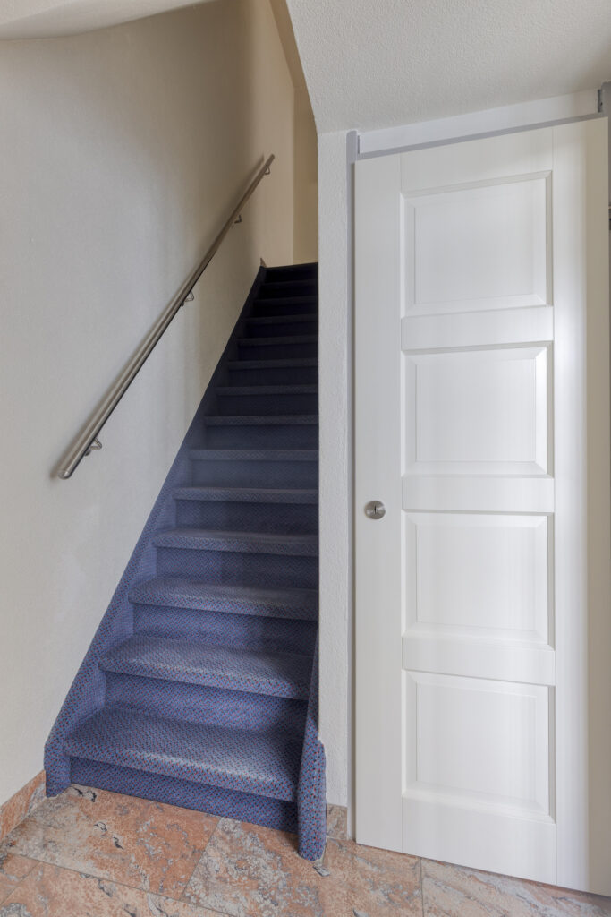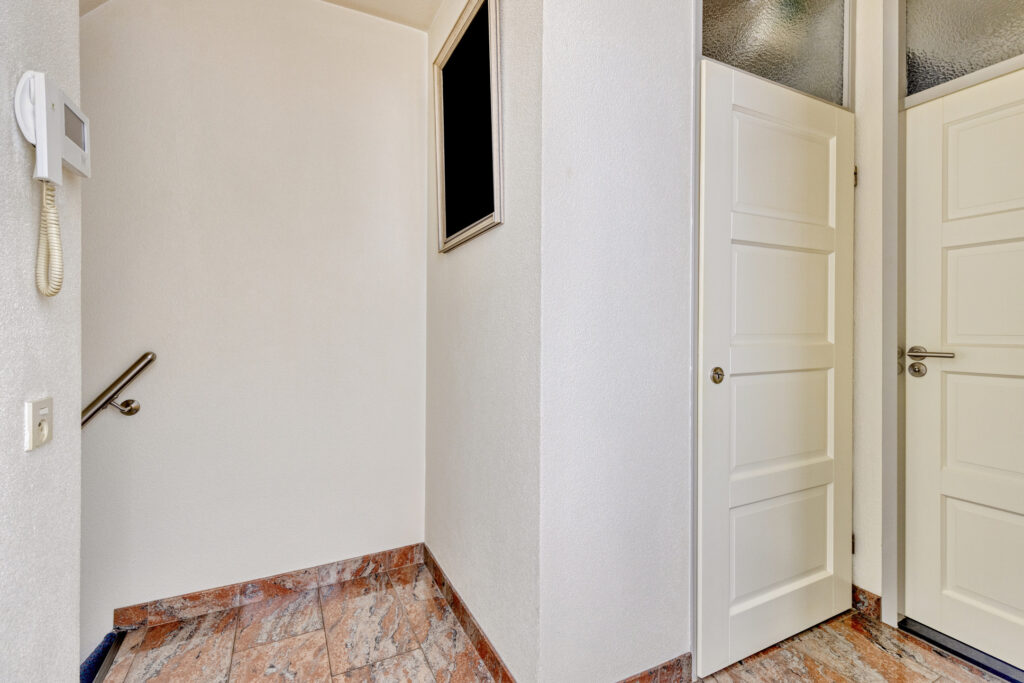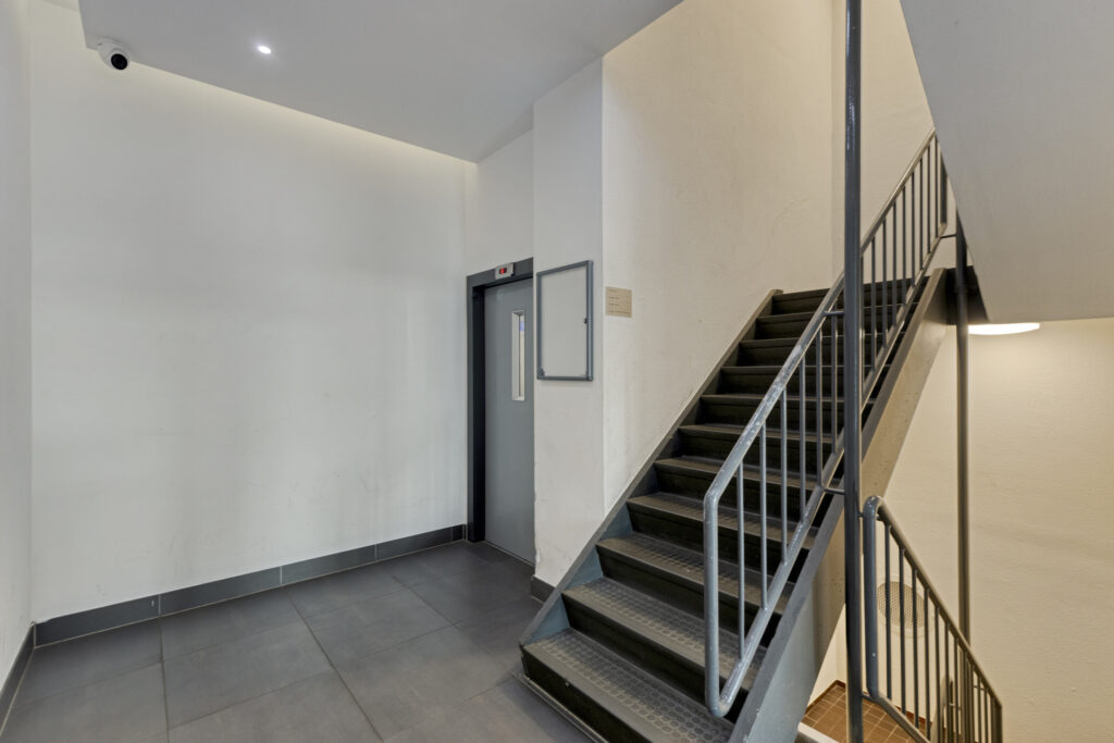 Centrale entree / hal, met brievenbussen- & bellentableau, het trappenhuis en toegang tot de lift.