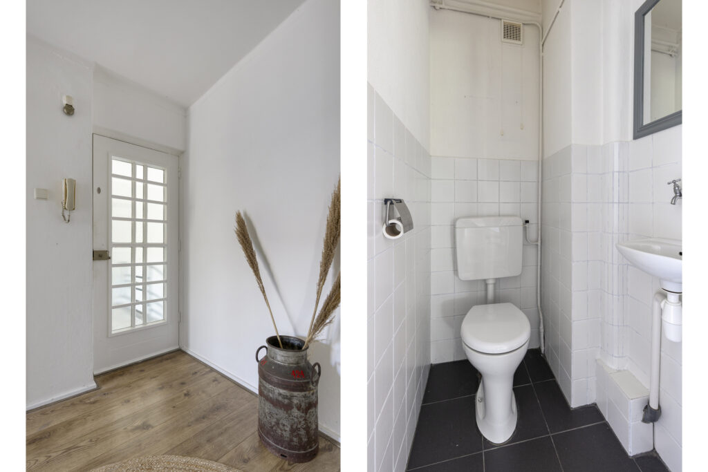 Afgesloten centrale entree van het complex, beltableau, brievenbussen, trappenhuis en toegang tot het souterrain met de gezamenlijke fietsenstalling; eigen ruime afsluitbare berging.