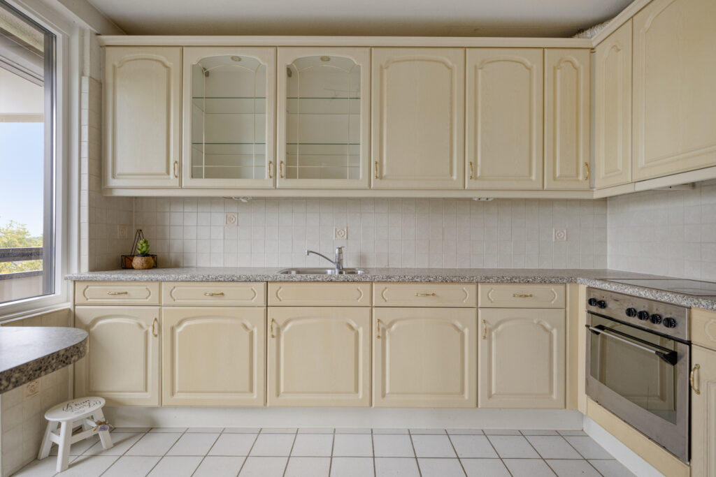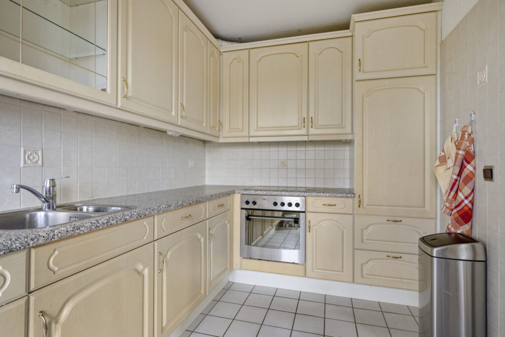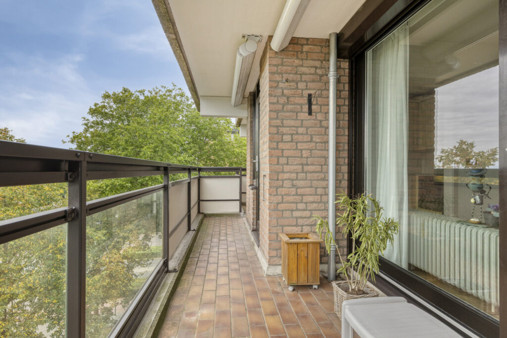 Riante woon-/-eetkamer met veel lichtinval. Via de schuifpui heeft u toegang tot het op het zuidwesten gesitueerde balkon dat beschikt over elektrische zonwering en rolluik. De woonkamer is tevens voorzien van een schouw met elektrische haard. Vanuit de woonkamer heeft u toegang tot de L-vormige keuken deze is voorzien van diverse inbouwapparatuur, te weten een 4-pits keramische kookplaat, oven, vaatwasser, koelkast, 1-1/2 spoelbak, mengkraan en afzuigkap. Middels een loopdeur heeft u toegang tot het balkon. De ruime bijkeuken is bereikbaar vanuit de hal, hier treft u de stadverwarmingsunit en opbergkasten, ook is hier de aansluiting voor de was- en droogapparatuur aanwezig alsmede een gootsteen. Via een loopdeur heeft u tevens toegang tot het balkon.