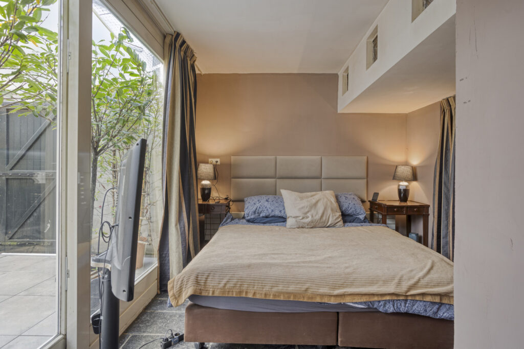 – Slaapkamer II gelegen aan de achterzijde. Deze slaapkamer is voorzien van een eigen moderne badkamer en kitchenette. In de badkamer treft u een douche, wastafelmeubel en een hangend closet. Middels openslaande deuren heeft u toegang tot het zonnige dakterras, deze is gesitueerd op het westen.