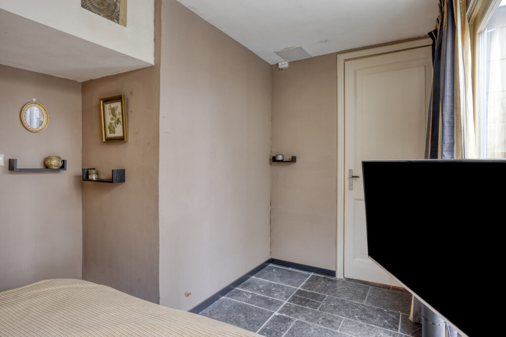– Slaapkamer I gelegen aan de voorzijde van de woning met schouw, houtenvloer en openslaande deuren naar het balkon.