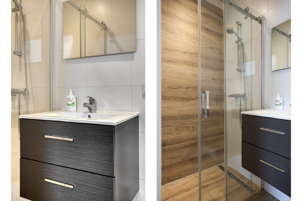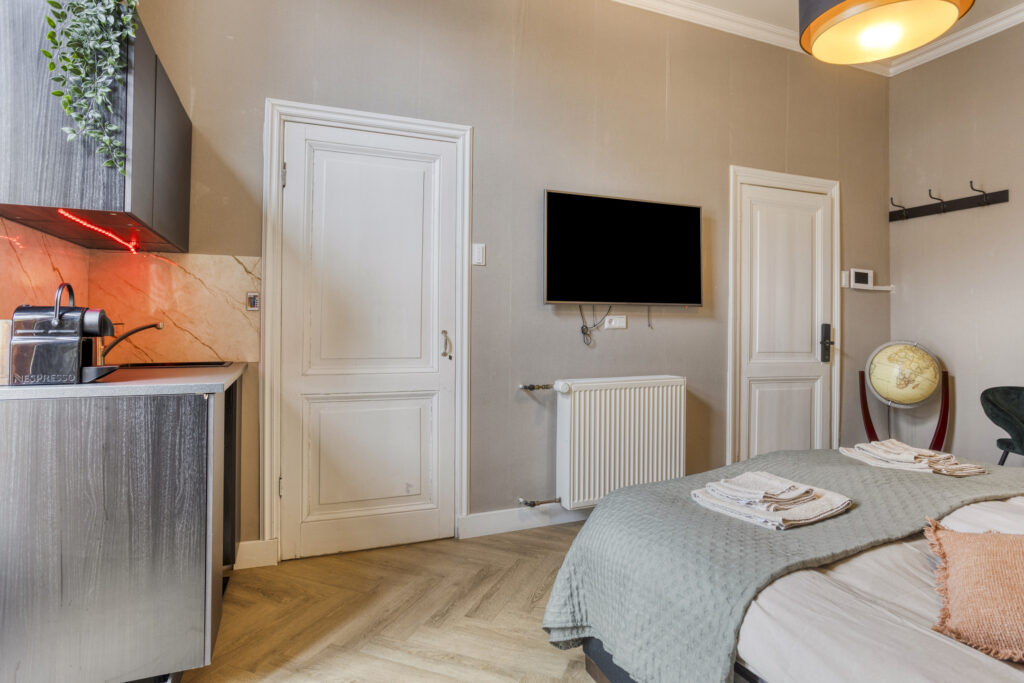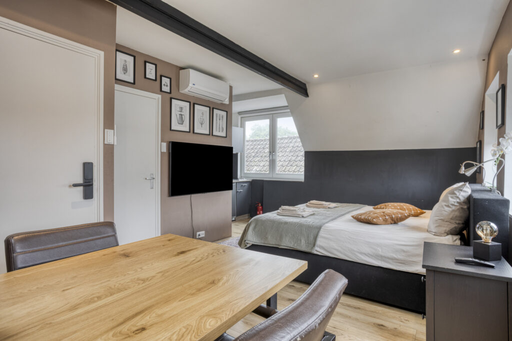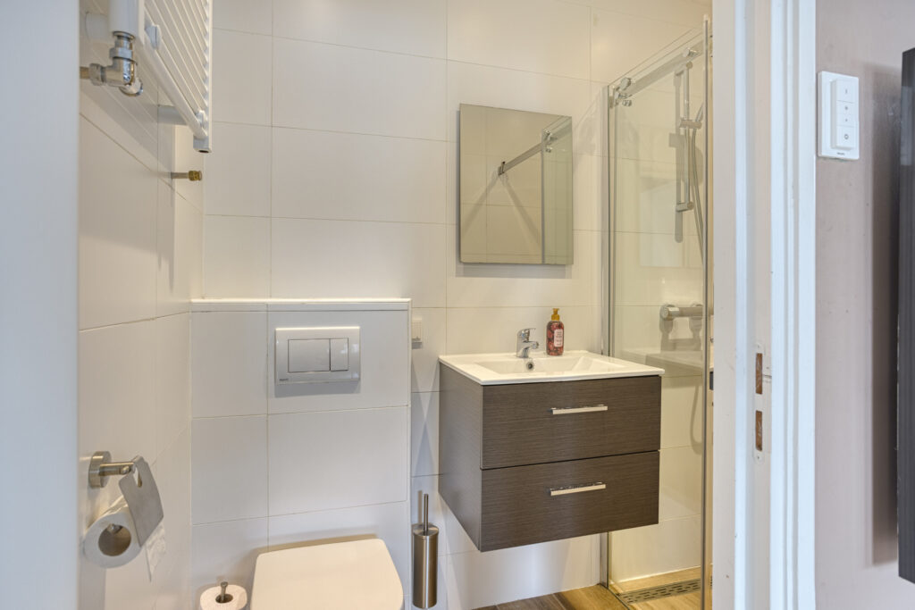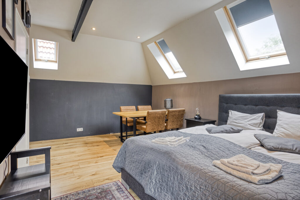 – Slaapkamer III gelegen aan de achterzijde van de woning en voorzien van een eigen moderne badkamer en kitchenette. In de badkamer treft u een douche, wastafelmeubel en een hangend closet. Tevens is er airco en een dakraam aanwezig.