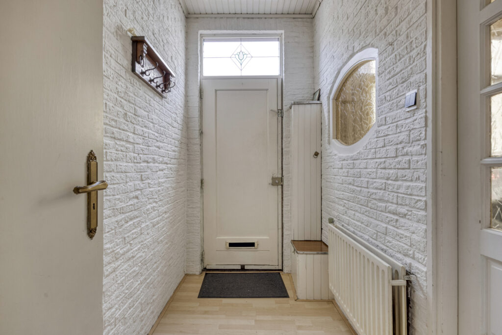 Hal met entree, garderobe, meterkast, ruime berging ideaal voor het plaatsen van uw fiets, in deze berging is ook een gootsteen aanwezig en electra. Vanuit de hal bereikt u de ruime en lichte woonkamer voorzien van houten vloer, grote schouw met open haard (niet in gebruik), opbergkast onder de trap en deur met trapopgang naar de eerste verdieping. Vanuit de woonkamer heeft u toegang tot de keuken met eenvoudige keukenblok voorzien van onder- en bovenkasten en spoelbak, losse koelkast, gaskookplaat en afzuigkap achterin de keuken is de toiletruimte bereikbaar met opstelplaats voor de Cv-ketel.