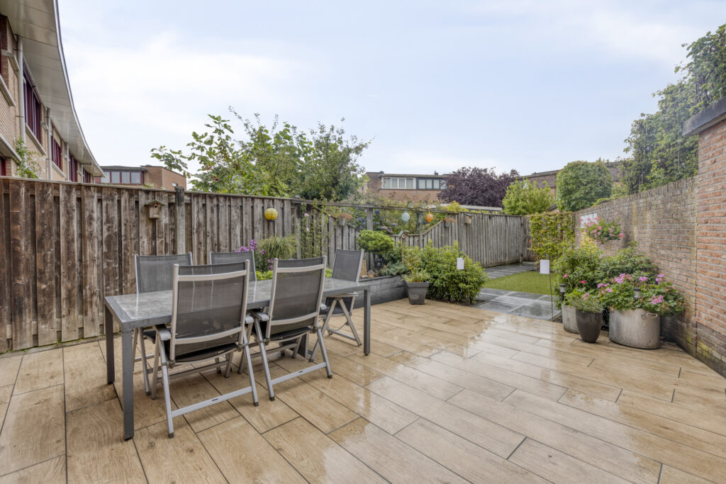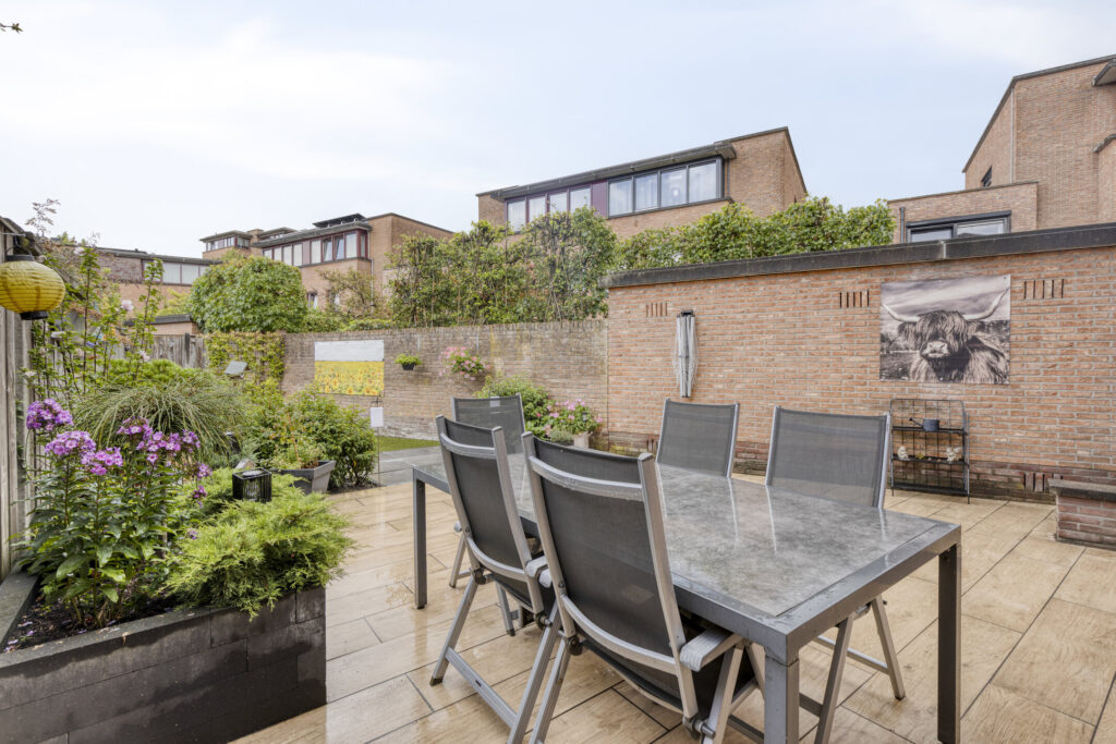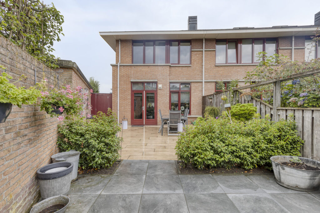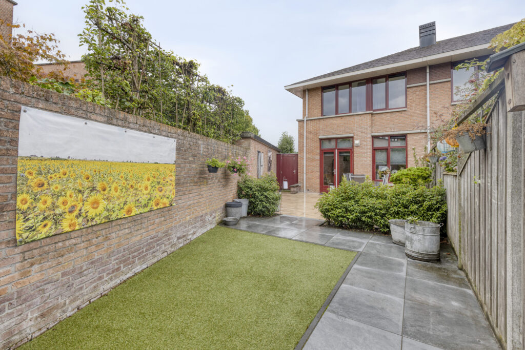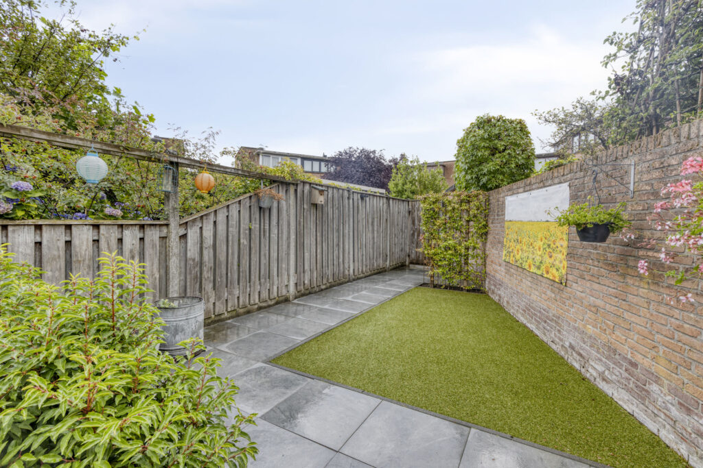 Vanuit het comfort van dit heerlijke woonhuis is het gehele jaar door ook volop van de verzorgde tuin met optimale privacy te genieten. De achtertuin is ingericht (2022) met keramische terrastegels, kunstgras gazon en diverse borders met beplanting. Verder zijn er diverse stopcontacten, een fonteintje, degelijke erfafscheiding en een waterkraan. De achtertuin is bereikbaar middels een achterom, tevens is er langs de woning doorloop naar de voortuin middels een afsluitbare poort. De voortuin is eveneens ingericht met keramische terrastegels. Ook is er aan de voorzijde een waterkraan aanwezig.