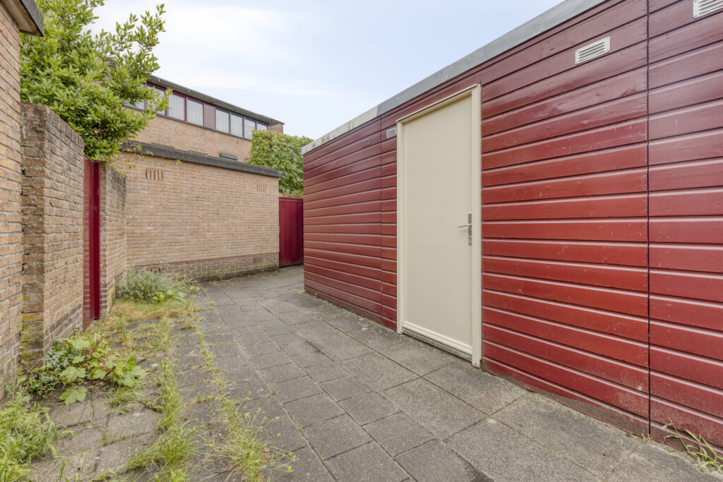 Achter het perceel is de ruime berging gelegen. Deze is uitgevoerd met een betonvloer en elektra voorziening.