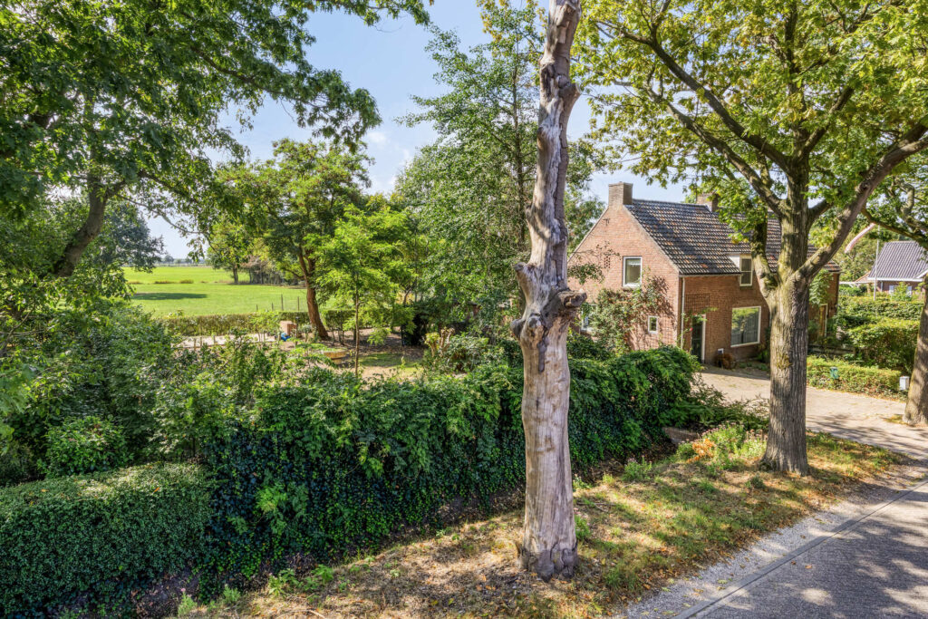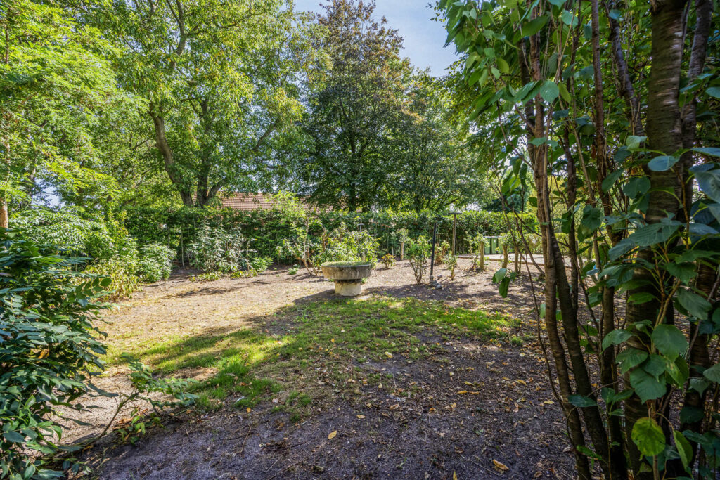 De tuin rondom biedt veel rust en privacy (vrije ligging voor- en achterzijde) en is ingericht met o.a. veel vaste beplanting, bestrating en een vijver. Opvallend is het fraaie uitzicht over de landerijen. De voortuin is eveneens ingericht met veel vast groen en biedt plaats aan een ruime oprit met plaats voor meerdere auto’s.