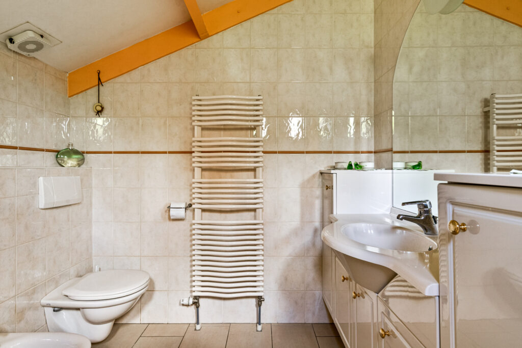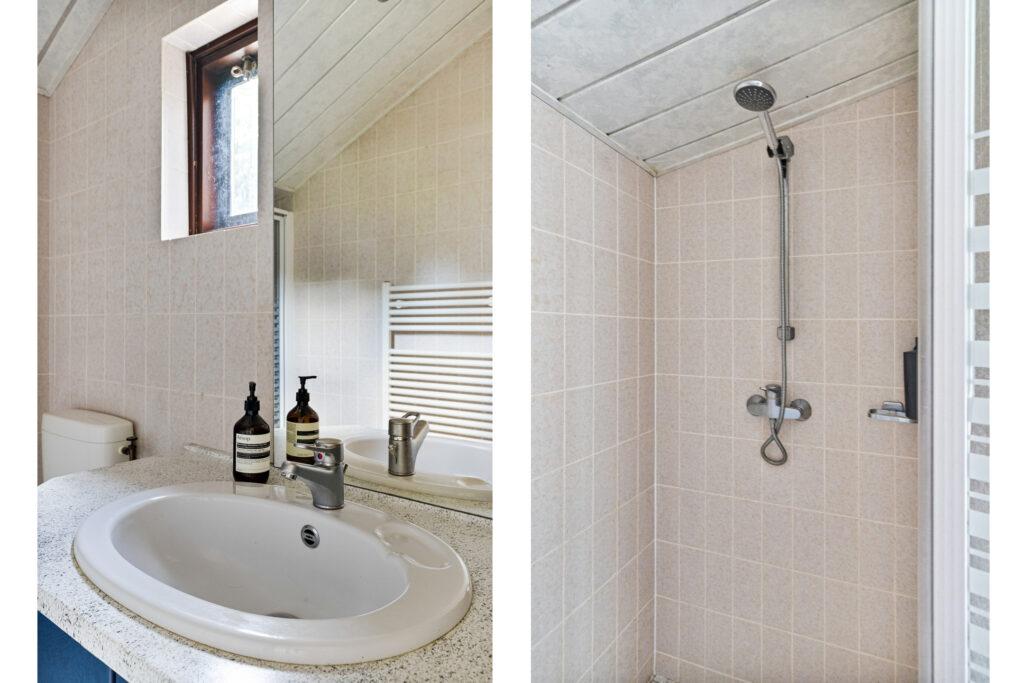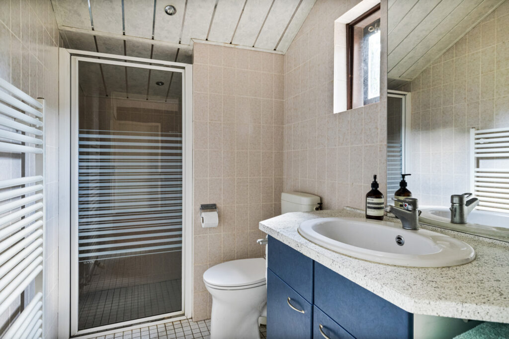 – Badkamer gelegen aan de voorzijde en voorzien van een inloopdouche, toilet en een wastafel in meubel.