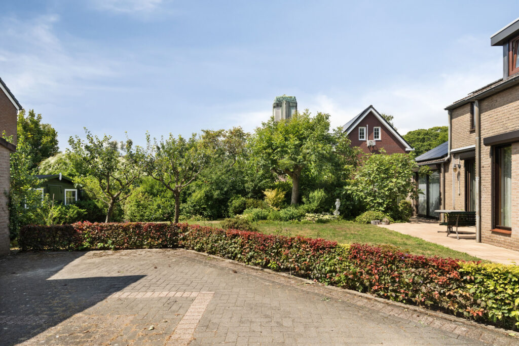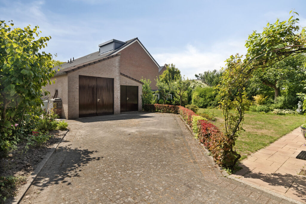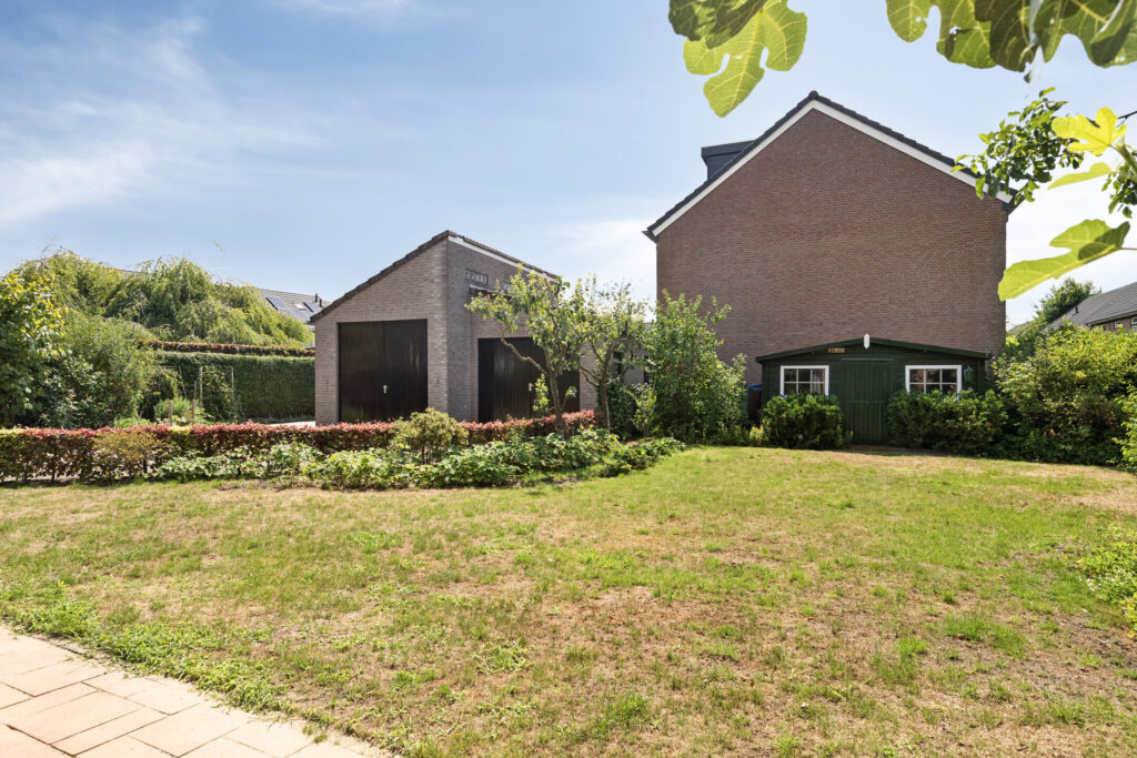 De tuin rondom biedt veel rust en privacy (vrije ligging voorzijde) en is ingericht met o.a. veel vaste beplanting, bestrating, een terras met zonnescherm en een gazon. Verder staan er op het perceel een royale garage in spouw en een tuinhuis voor opslag van bijv. tuinmateriaal. Er zijn twee regenwatertanks van totaal 2200 liter opslag voor de besproeiing van de tuin. Tevens is er buitenverlichting en een buitenkraan aanwezig.