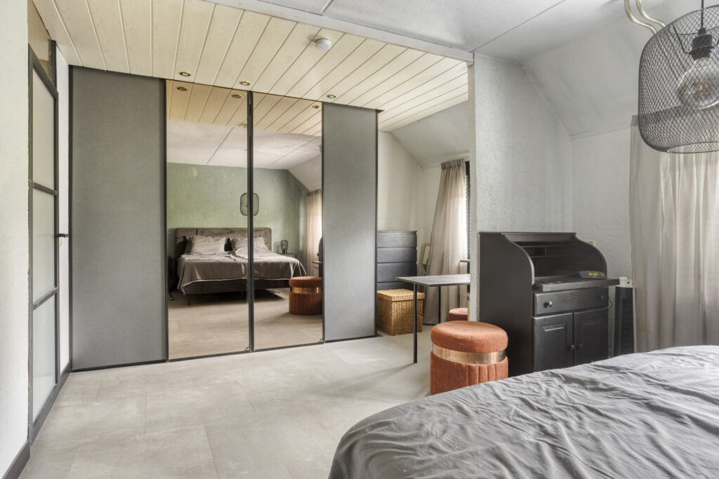 – Slaapkamer I, gelegen aan de achterzijde, riant van formaat (voorheen twee slaapkamers) en voorzien van airconditioning;