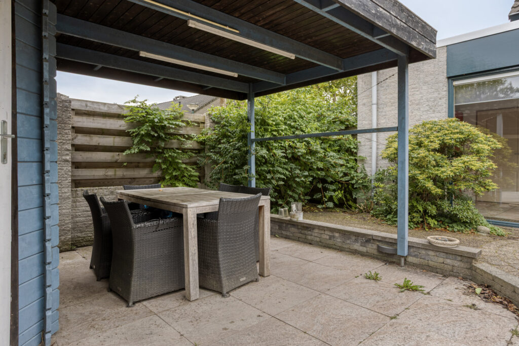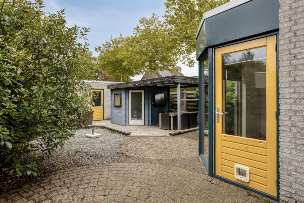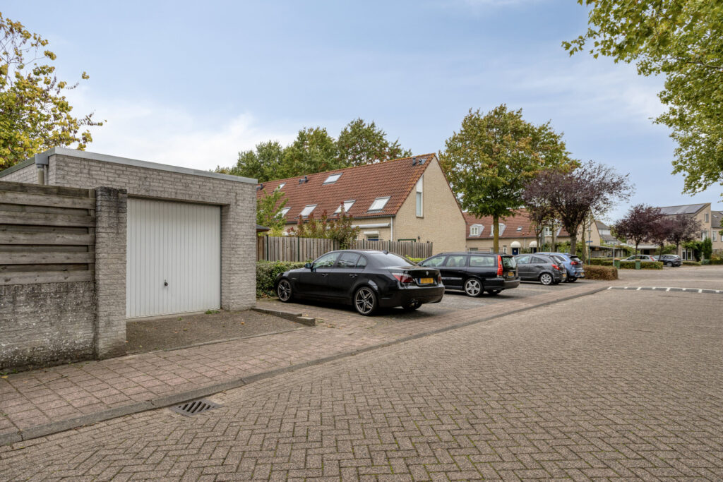 Deze woning beschikt over een voor- zij- en achtertuin. De privacy biedende achtertuin is gelegen op het noorden en ca. 12.5 meter diep! De tuin heeft meerdere terrassen waardoor het een heerlijke tuin is om te genieten van de zon of juist de schaduw bij warme dagen. De tuin beschikt o.a. over een houten berging met overkapping, borders met volwassen beplanting en degelijke erfafscheiding. Tevens zijn er diverse lichtpunten, een waterpunt, stopcontacten en een achterom aanwezig. De garage gebouwd met spouwmuren (afm. ca. 7.92 x 3.13m) en voorzien van elektra en een stalen kanteldeur. De zij- en voortuin zijn ingericht met sierbestrating en vaste beplanting.