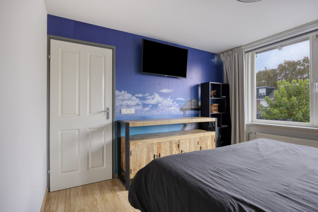 Via een vaste trap bereikt u de overloop welke toegang biedt tot; Slaapkamer I gelegen aan de achterzijde van de woning, voorzien van een laminaatvloer. Ruime slaapkamer II gelegen aan de achterzijde van de woning voorzien van een laminaatvloer. Nette slaapkamer III gelegen aan de voorzijde van de woning, voorzien van een laminaatvloer. Moderne en volledig betegelde badkamer met douche, vaste wastafel met meubel, staand closet, vloerverwarming en een designradiator.