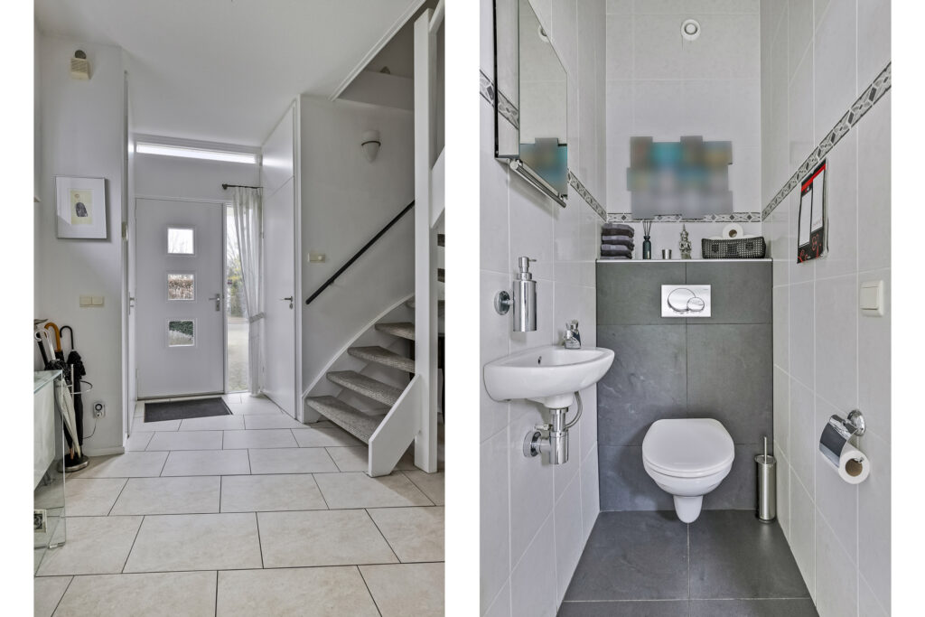 Ruime hal/entree welke toegang biedt tot het toilet, meterkast, trapopgang naar de eerste verdieping en de garderobe. Tevens is vanuit de hal de riante woonkamer bereikbaar.