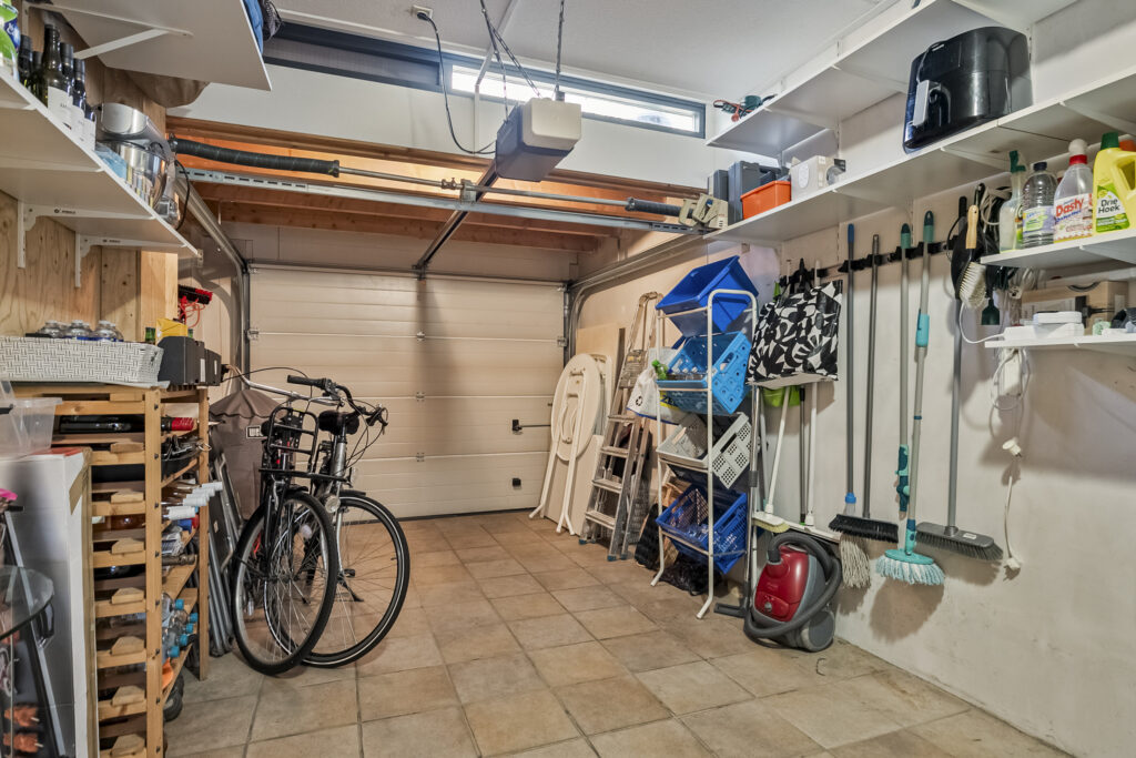 Vanuit de keuken heeft u toegang tot de bijkeuken en de garage. In de bijkeuken heeft u de ruimte voor het plaatsen voor de was- en droogapparatuur, tevens treft u hier voldoende opbergruimte. De ruime garage is voorzien van een elektrische garagedeur en biedt voldoende ruimte voor het plaatsen van een auto en meerdere fietsen. Tevens is hier elektra aanwezig en voldoende opbergruimte.