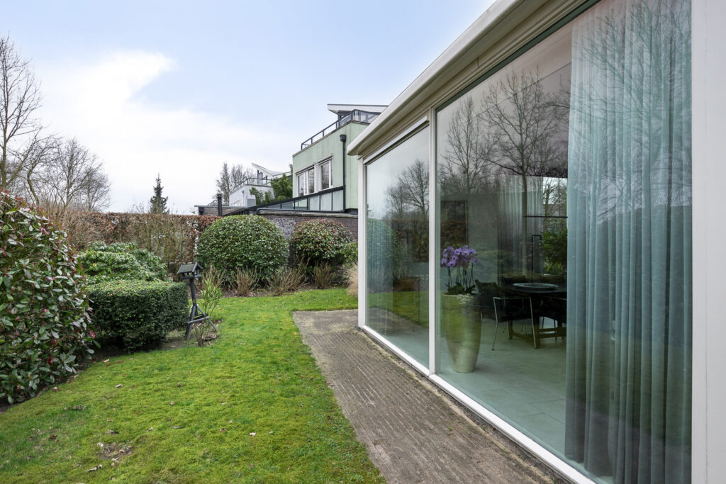 Op een schitterende locatie gelegen aan een park, onder architectuur gebouwde vrijstaande woning. Ideale indeling, een ruim perceel met meerdere terrassen en alle rust in een prachtig aangelegde en zonnige tuin.