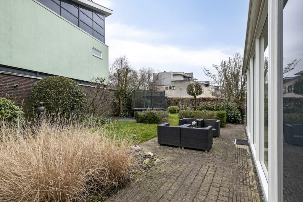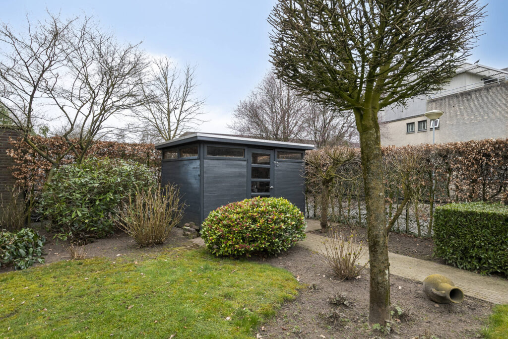 De tuin is absoluut een van de grootste voordelen van de woning. In de tuin vindt u namelijk meerdere terrassen, de betegelde terrassen zijn voorzien van elektrische zonneschermen, waardoor u heerlijke zomeravonden kunt beleven. Er zijn diverse borders met een diversiteit aan beplanting. In de tuin en met het park op de achtergrond heeft u het gehele jaar door het gevoel dat u in de vrije natuur woont. Uiteraard is de tuin omsloten door een hekwerk met 2 poortjes. Tevens is er een vrijstaande houten berging aanwezig.