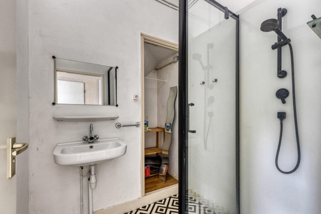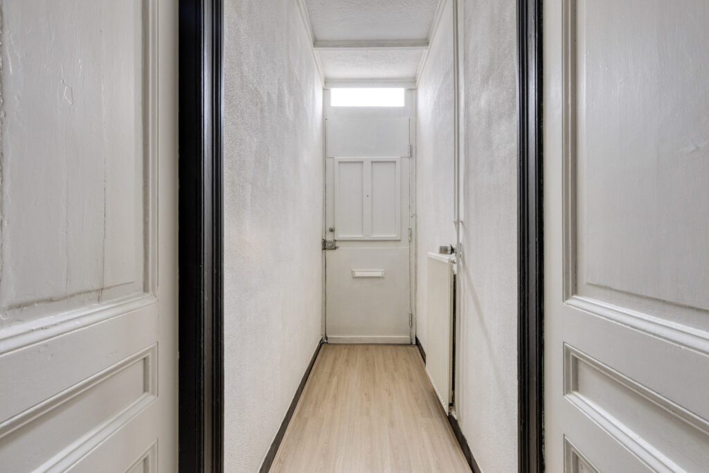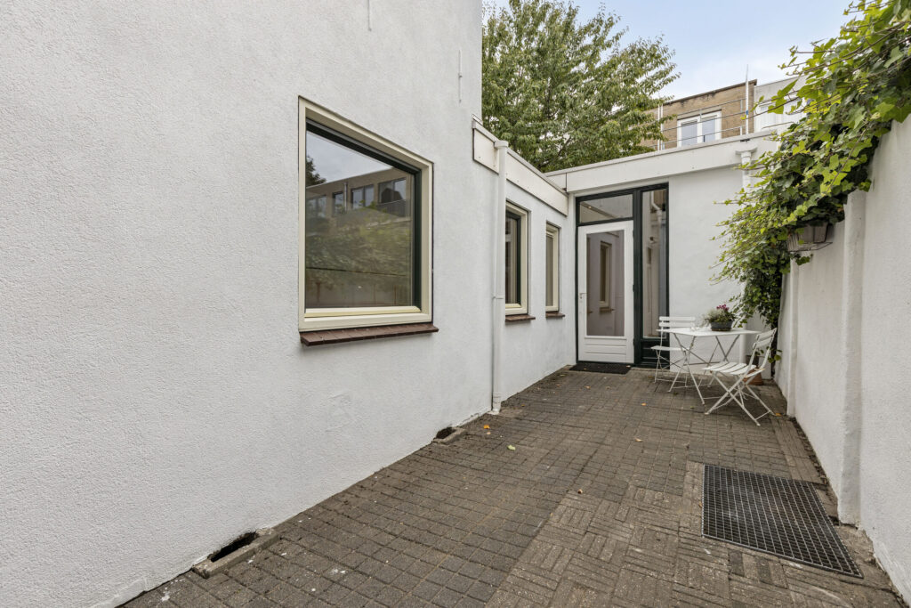 Vanuit de keuken heeft u tevens toegang tot de bijkeuken, hier is de aansluiting voor de was- en droogapparatuur aanwezig. Tussenhal met opstelplaats voor de Cv-ketel (bj. 2018), loopdeur naar de stadstuin, trap opgang naar de eerste verdieping en toegang tot de badkamer. Badkamer voorzien van douchecabine, wastafel en opbergruimte. tussenhal met wastafel met toegang tot het achterhuis (later aangebouwd), kantoor/werkkamer met toegang tot slaapkamer III voorzien van volledig betegelde toiletruimte met wastafel, vanuit de slaapkamer heeft u middels een loopdeur toegang tot de stadstuin.