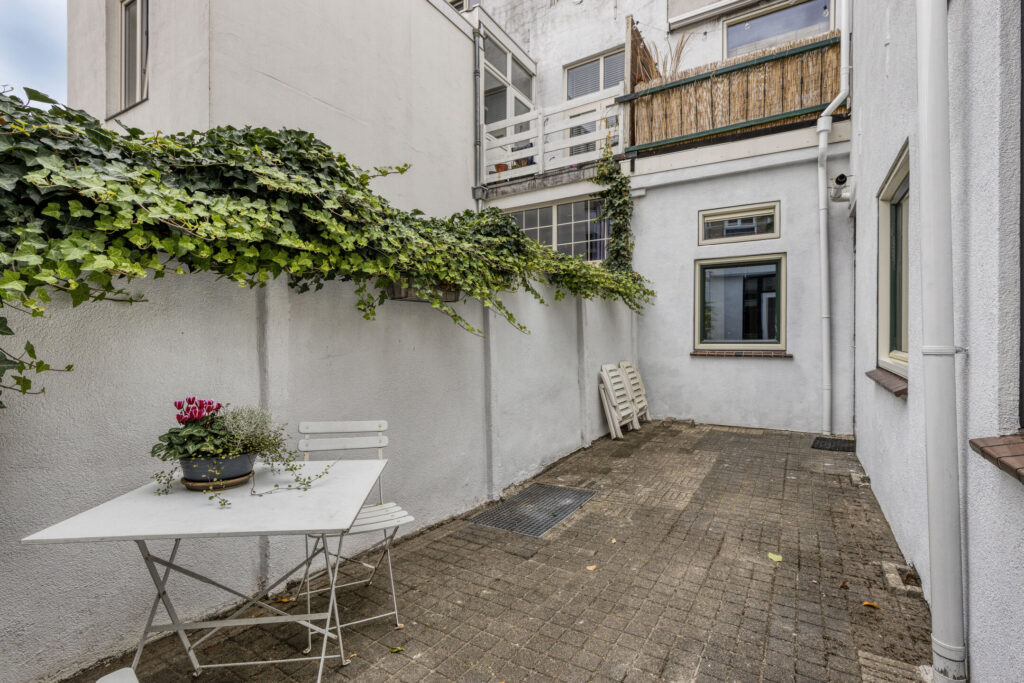– Zonnige en volledig betegelde stadstuin.