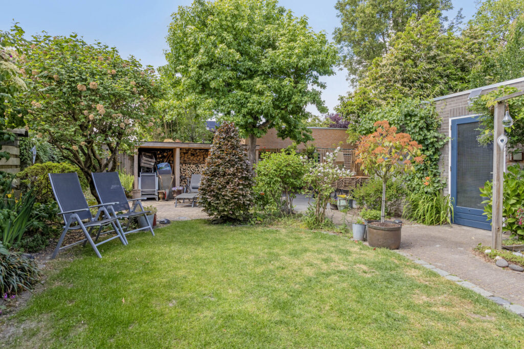 Vanuit het comfort van dit heerlijke woonhuis is het gehele jaar door ook volop van de verzorgde tuin met optimale privacy te genieten. De tuin is speels ingericht met sierbestrating, diverse terrassen en veel vast groen. Achterin de tuin is een fraaie opslag in Douglashout gerealiseerd met verlichting. Verder is de tuin voorzien van diverse stopcontacten, buitenverlichting, degelijke erfafscheiding, waterkraan en een containerombouw (in Douglashout). Vanuit de tuin is tevens de stenen berging te bereiken met doorloop naar de multifunctionele ruimte. De voortuin is ingericht met veel vaste beplanting en biedt tevens plaats aan een royale oprit met parkeerplaats voor meerdere auto’s.